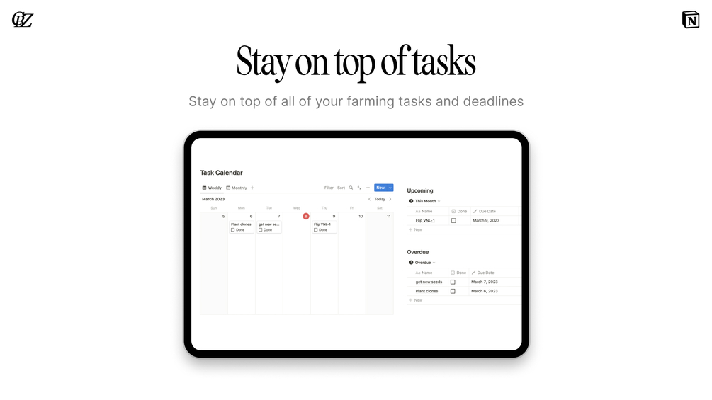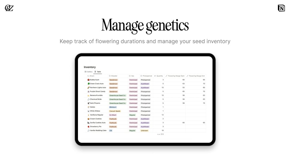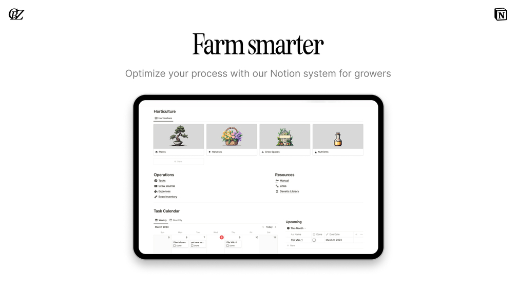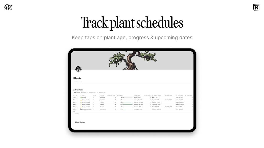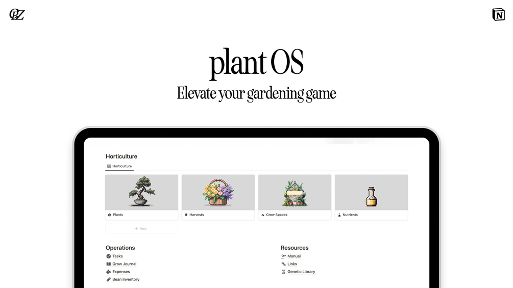 Discover plantOS, the ultimate Notion system designed to elevate your gardening game. With its array of customizable templates, you can efficiently manage every aspect of your garden, from calculating essential plant dates to recording your yield and plant history. Say goodbye to the guesswork of nutrient feeding schedules and hello to optimized plant growth.
